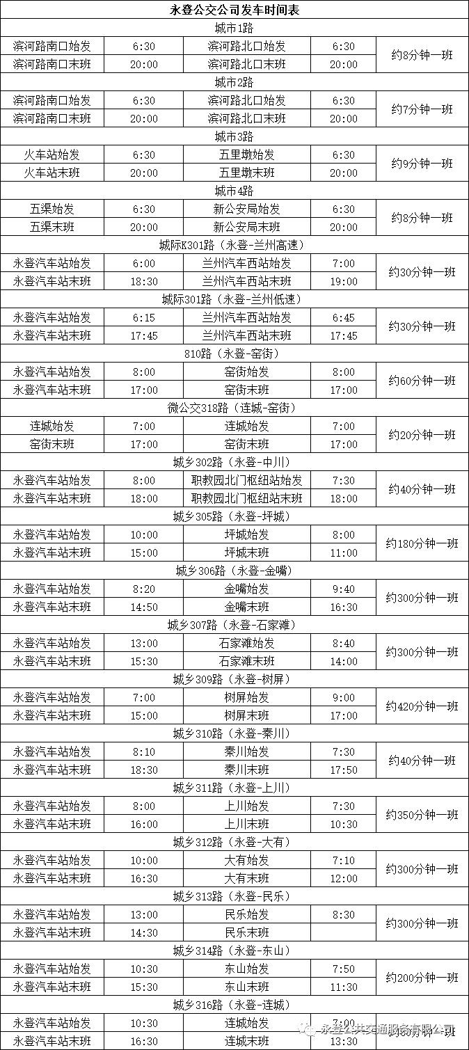 兰州市永登公共交通服务有限公司决定自2021年5月11日起,对公交运行时间进行调整。