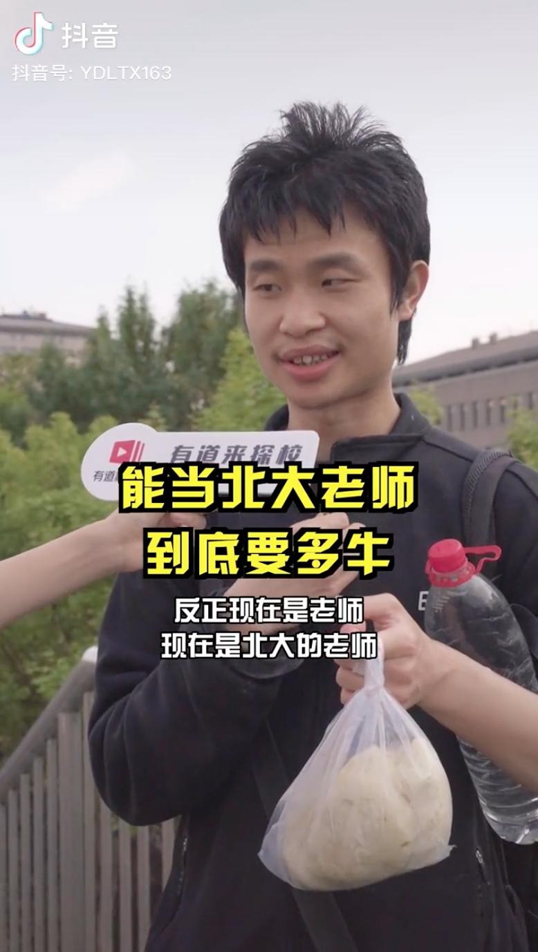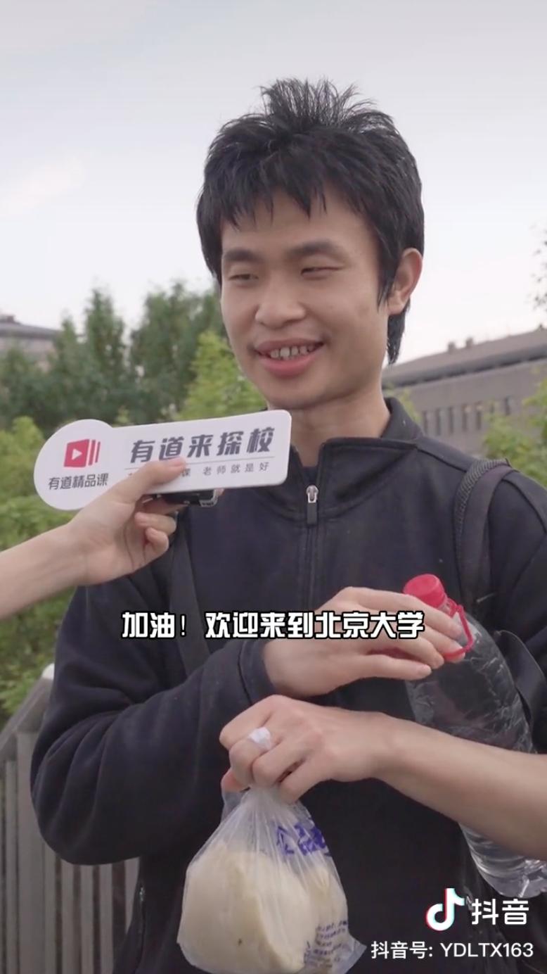 短视频博主 @有道来探校 在北京大学进行采访时,遇到了一个男生。