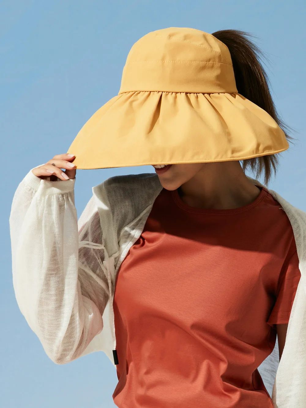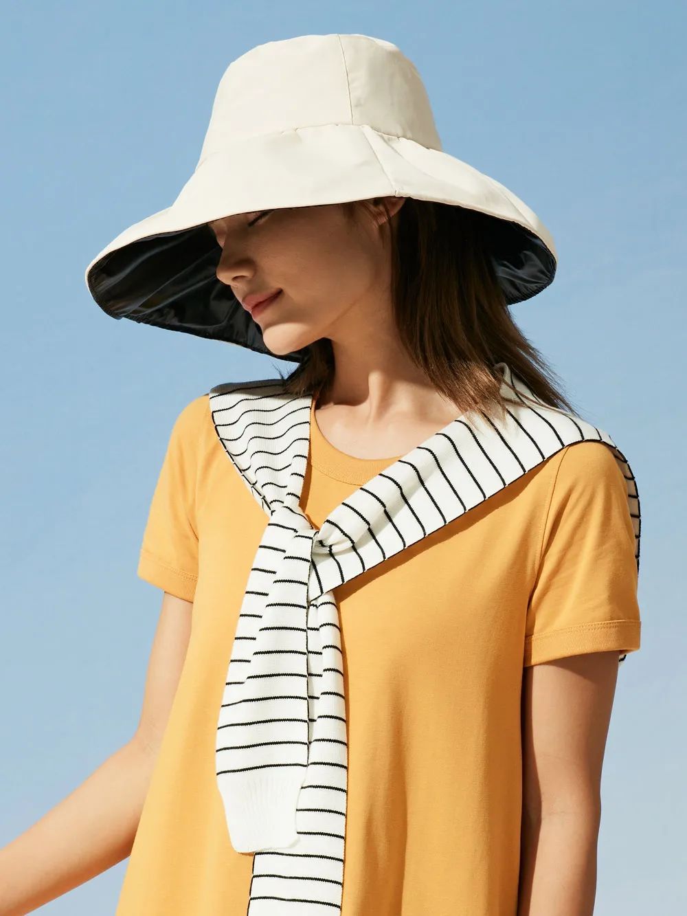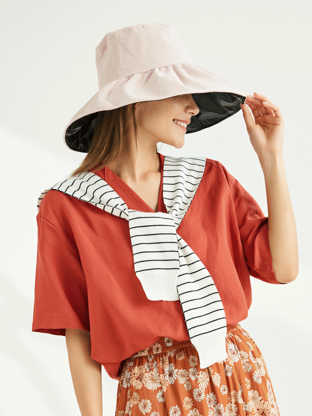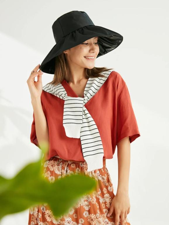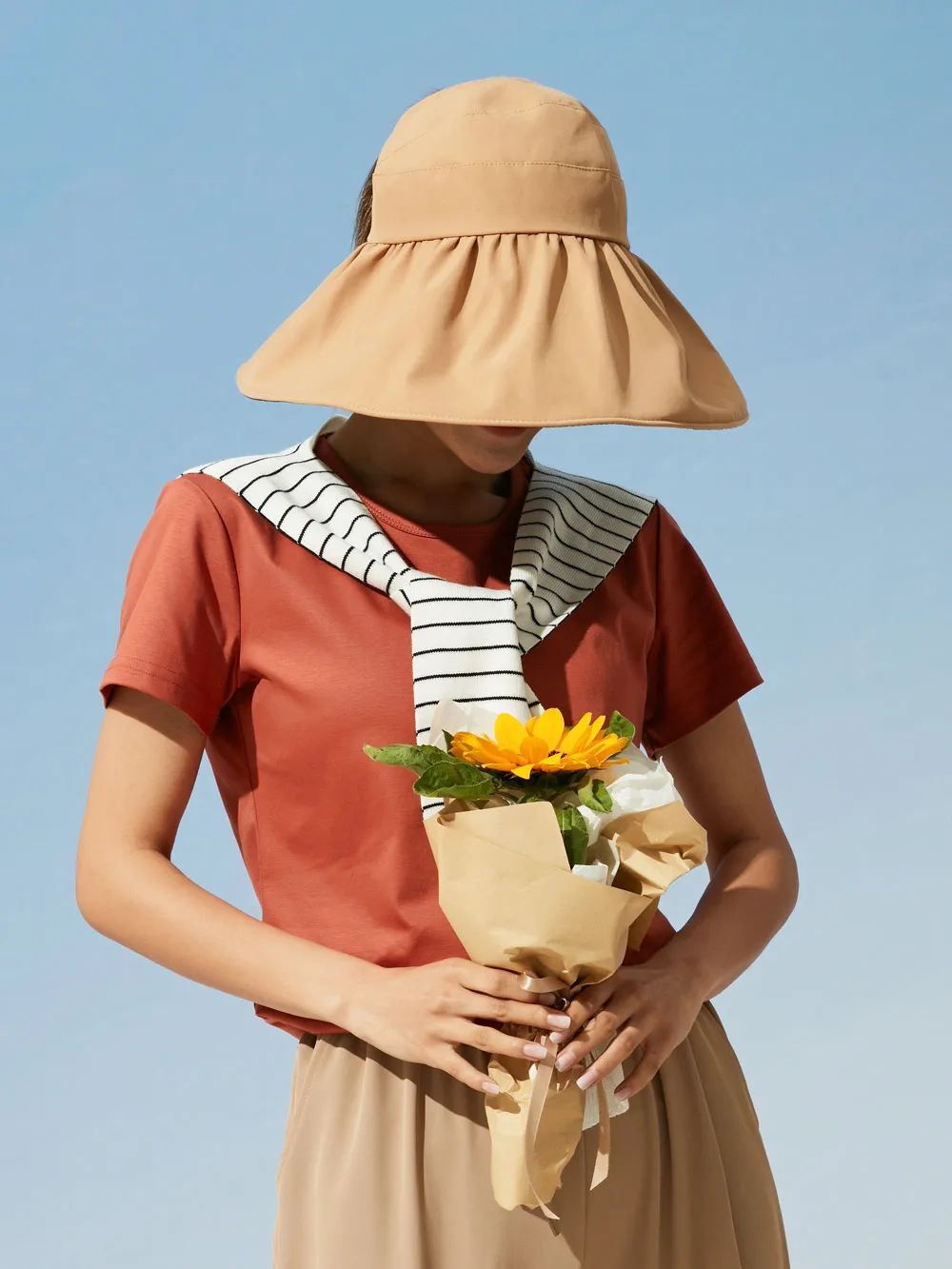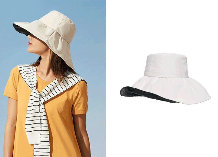 基本款,是我们常见的大帽檐遮阳帽的样式,13cm的宽帽檐,基本上能把脸都遮住了,防晒还显脸小,简直一举两得。
