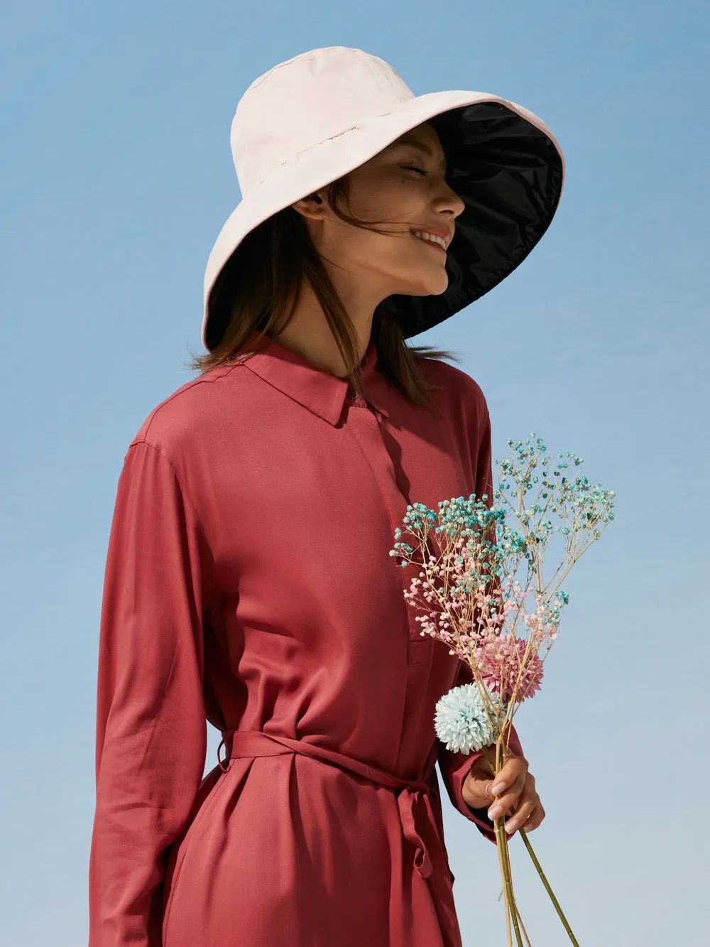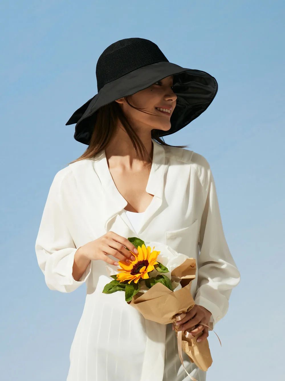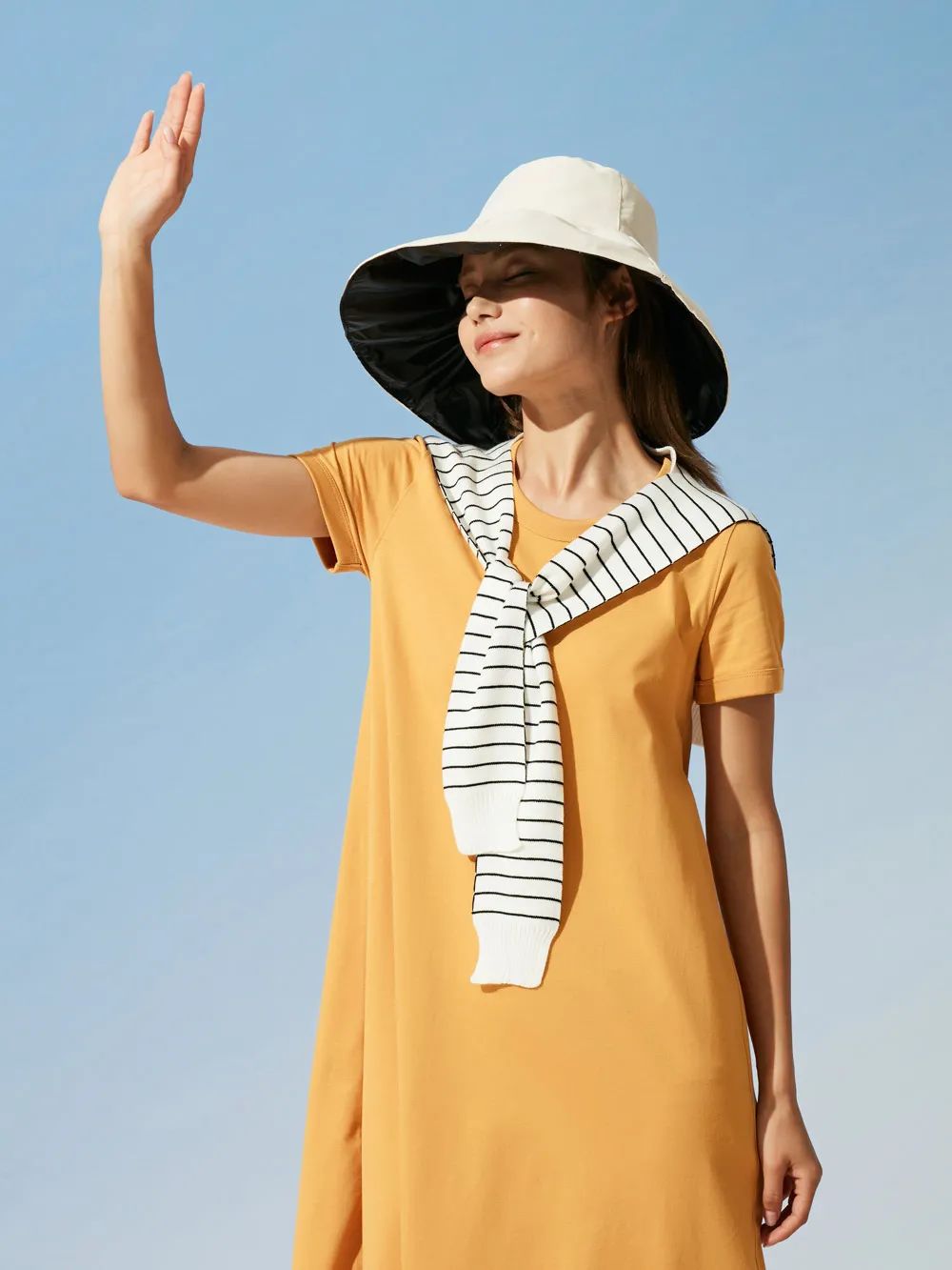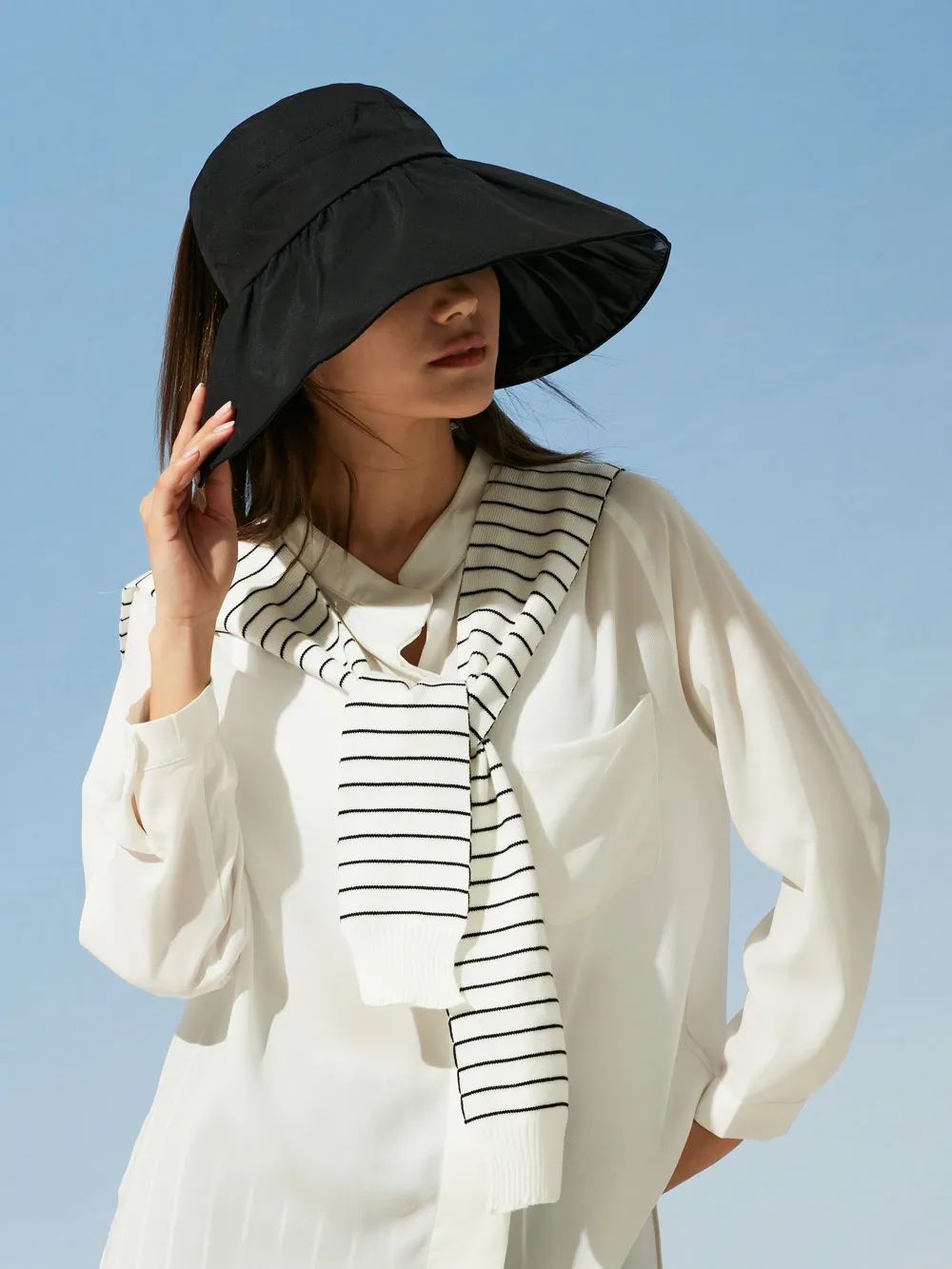 基本款,是我们常见的大帽檐遮阳帽的样式,13cm的宽帽檐,基本上能把脸都遮住了,防晒还显脸小,简直一举两得。