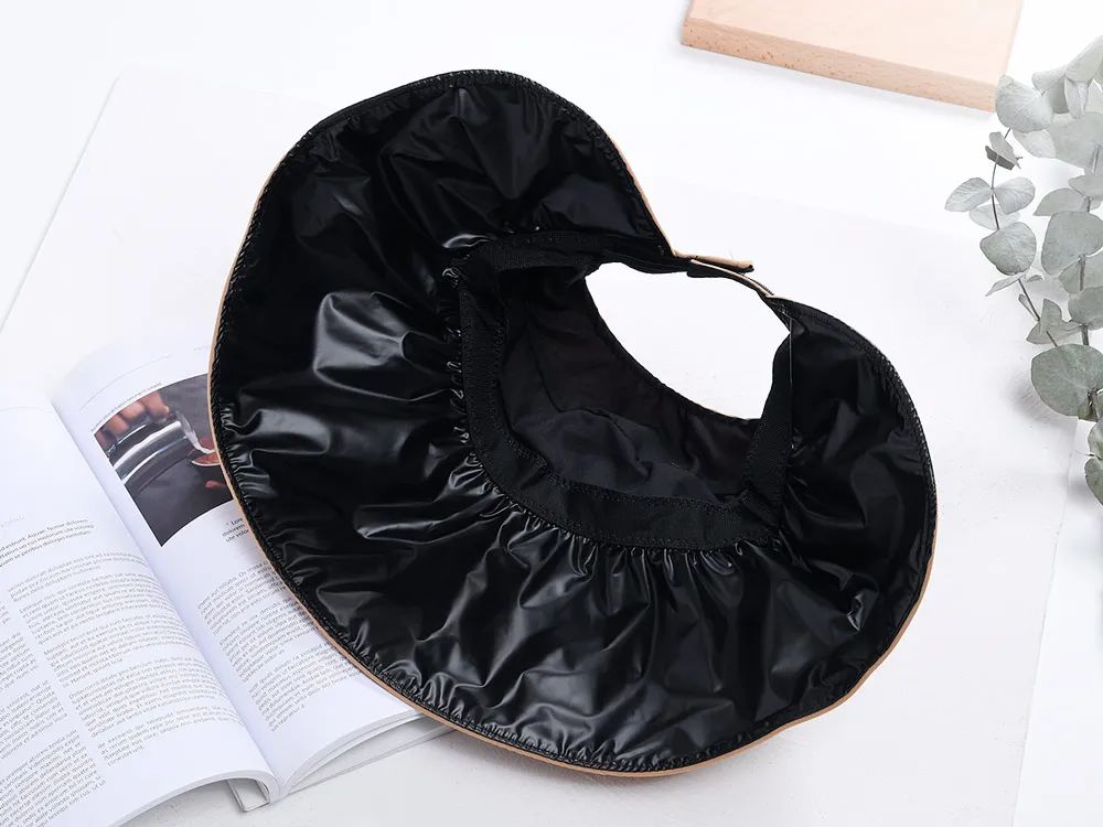 中间的夹心层,是黑胶的基底,同时还能让帽檐更挺括,让它展开、撑起来,为你遮蔽阳光。