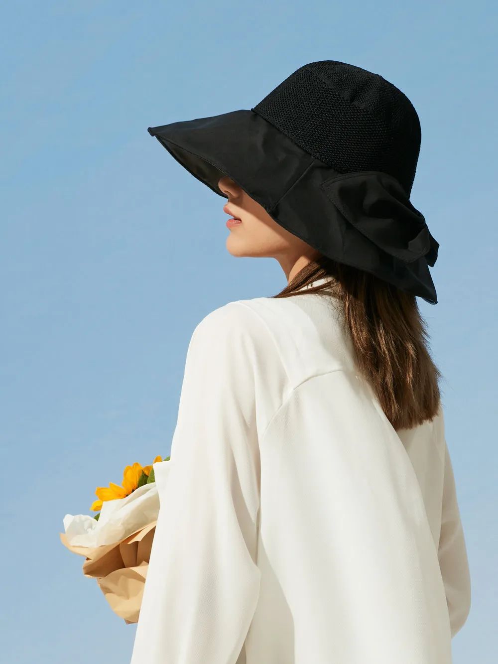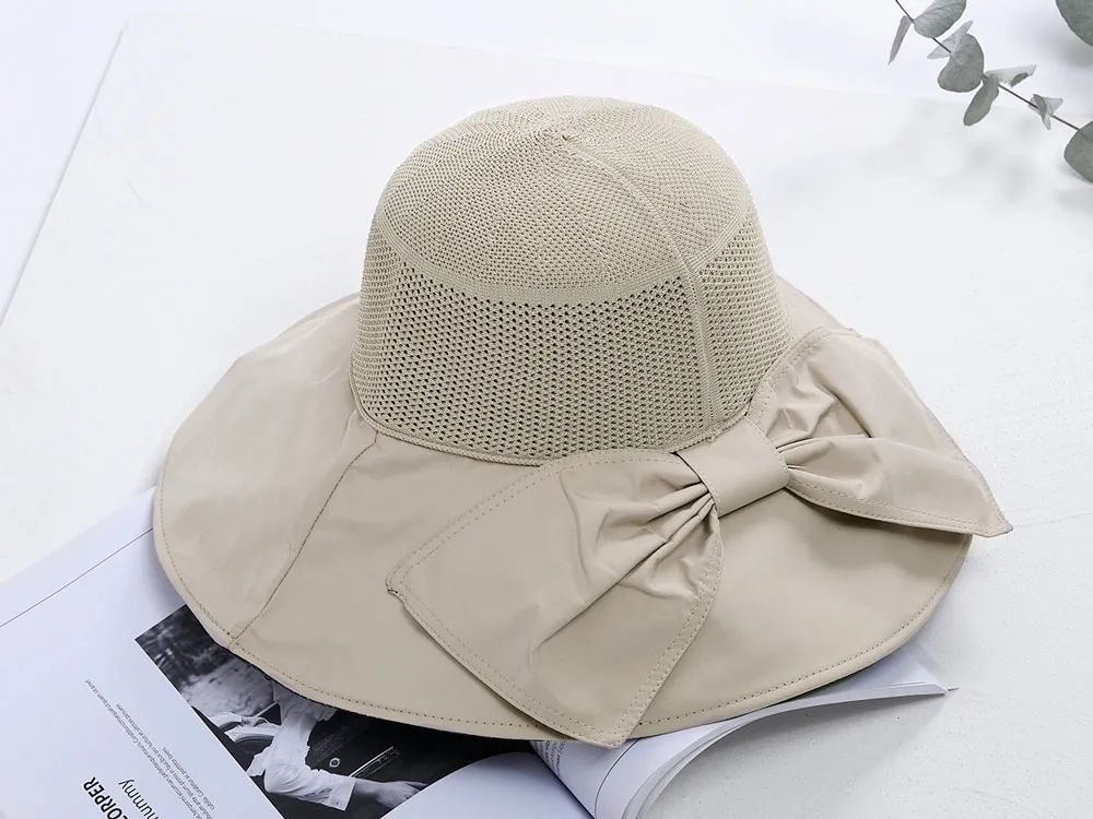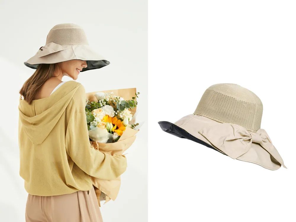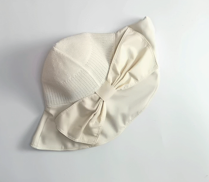 蝴蝶结款,在基本款的基础上,在后脑勺的地方,加了一个大大的蝴蝶结,更加优雅可人。另外,头顶的部分被改成了类似草帽的镂空结构,更加清爽透气,不容易闷热。