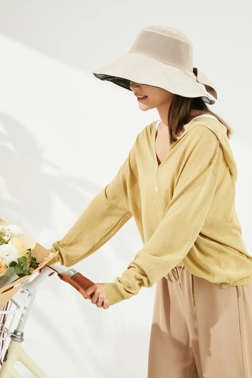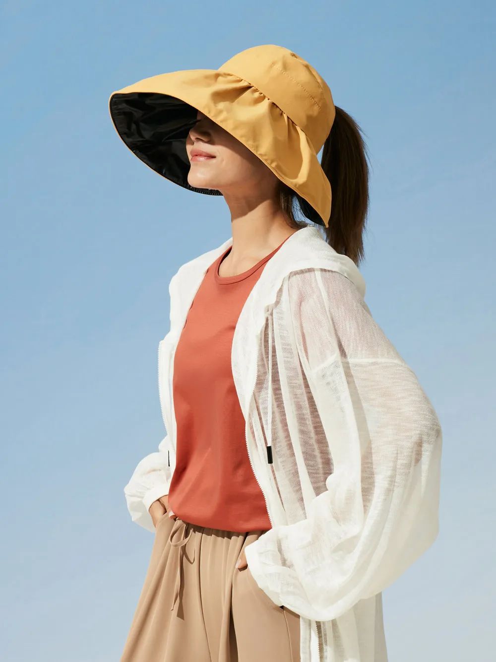 共有黑色、浅驼色、黄色、粉色,4色可选,清爽靓丽,好搭不挑人。Lingo Codes黑胶防晒帽,现一条生活馆有售▼