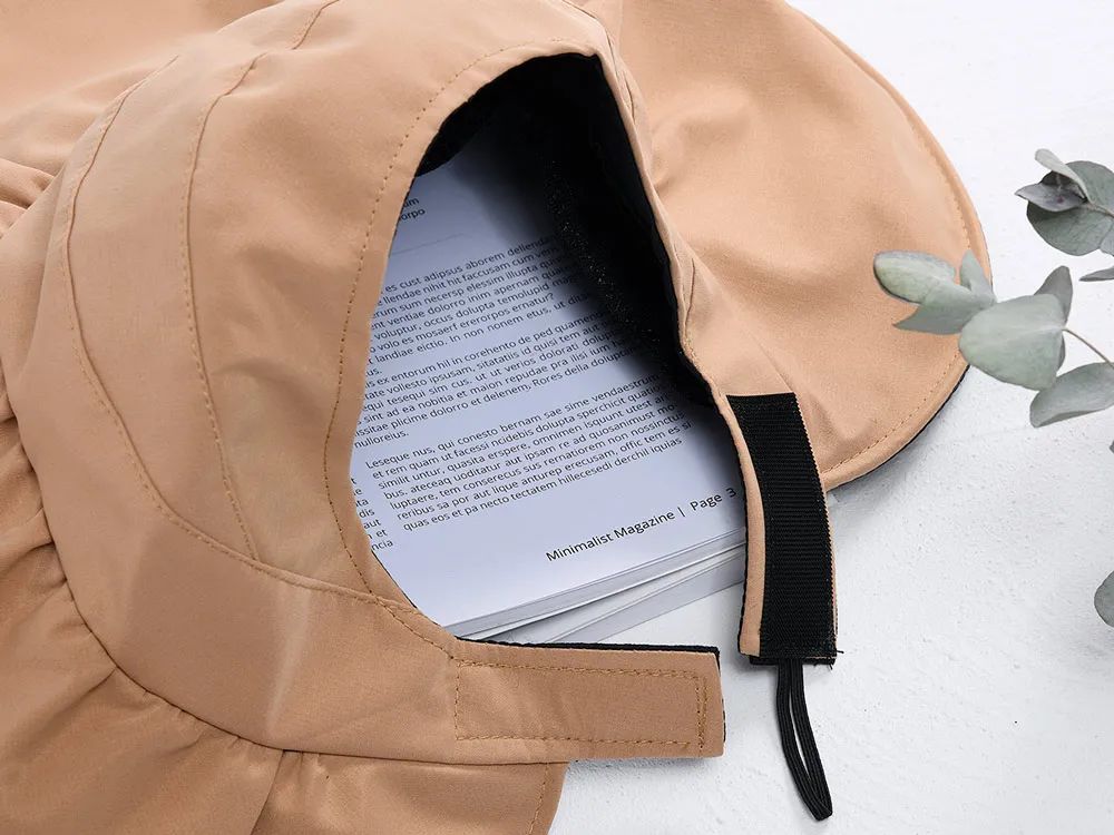 帽子的面料柔软有筋骨,使用的时候可以撑起来,收纳的时候还能折叠起来,便携不占地方。