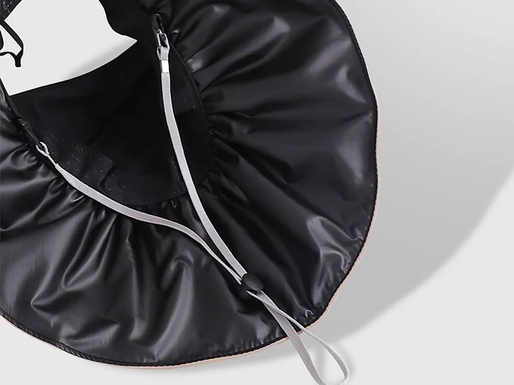 附带可拆卸防风绳,大风天也能戴得非常稳。Lingo Codes黑胶防晒帽,现一条生活馆有售▼