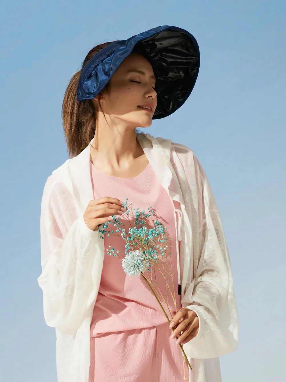 发箍款,是发箍+帽檐的组合。15cm的宽帽檐,遮挡范围很大,重点需要防晒的眼周、脸颊,都能保护起来。