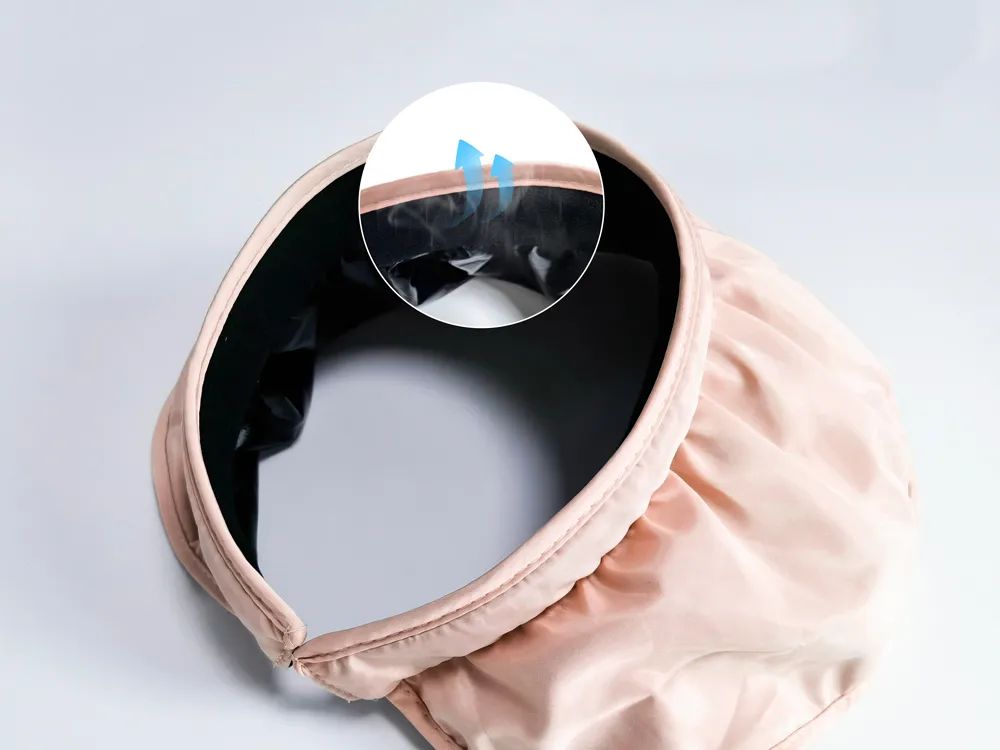 发箍的设计也不能掉以轻心,不仅要戴得牢靠,还要戴得舒服。这款防晒帽的发箍部分,弧度经过了反复的测试,和脑部的曲线很贴合,既舒服,又不容易下滑。
