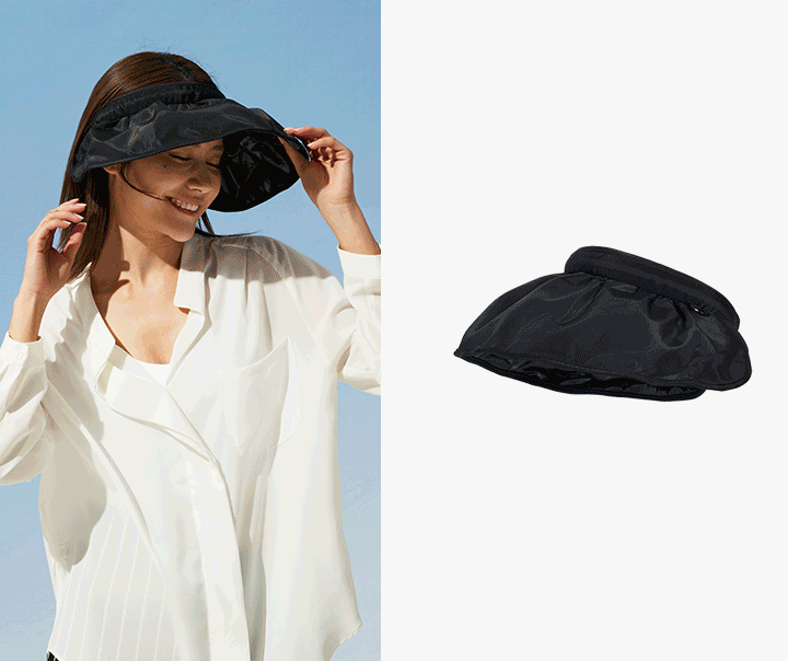 发箍款,直接把整个头顶都解放了,自由自在。不需要遮阳的时候,还能直接当发箍戴。