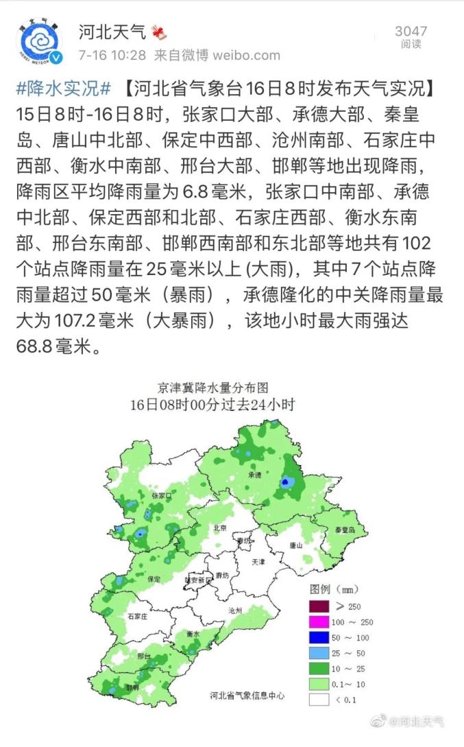 此外,16 日下午到夜间,全省大部分地区有分散性雷阵雨,其中承德南部、唐山、秦皇岛、沧州东部、衡水东部有中雨,局地有大雨到暴雨,雷雨时局地伴有短时强降水、短时大风等强对流天气。