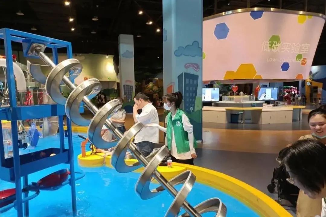 中国杭州低碳科技馆是全球第一家以低碳为主题的大型科技馆,是公众特别是青少年了解低碳生活、低碳城市、低碳经济的“第二课堂”。低碳馆总共分为四层,一楼有供儿童体验的镜子迷宫、仿真蔬菜园等场馆。二楼分布着全球变暖体验馆、碳循环馆等区域。三楼四楼则以未来展厅和3D电影体验区为主。在经过简单的参观和工作人员的指导后,队员们正式开始了今天的志愿服务活动。