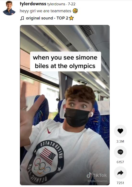 美国跳水运动员泰勒·唐斯的视频“当你在奥运会上看到西蒙·拜尔斯”。03