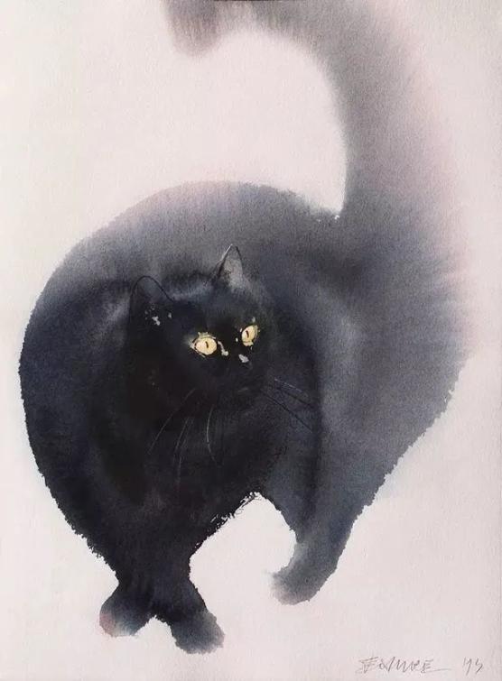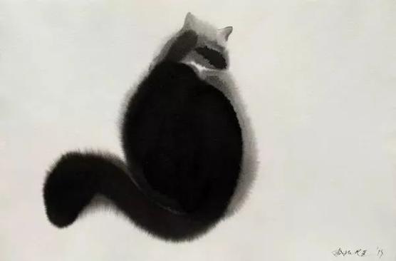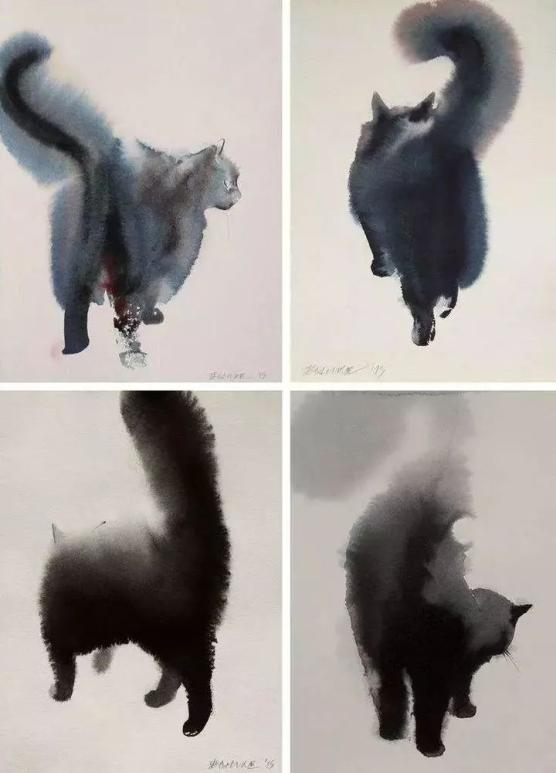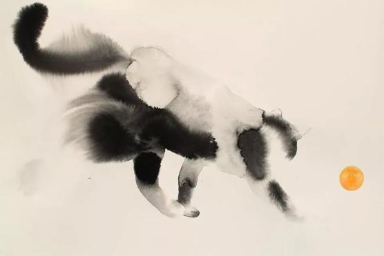 他笔下的猫咪柔软无骨,或卧或坐,含糊一团。寥寥几笔就能“剥”出一只活灵活现的动物。如果你也是水墨爱好者的话,一定也懂得这种”流动的梦境“般的感受。生命是流动的,景物也是。
