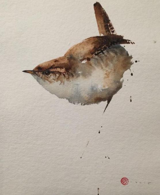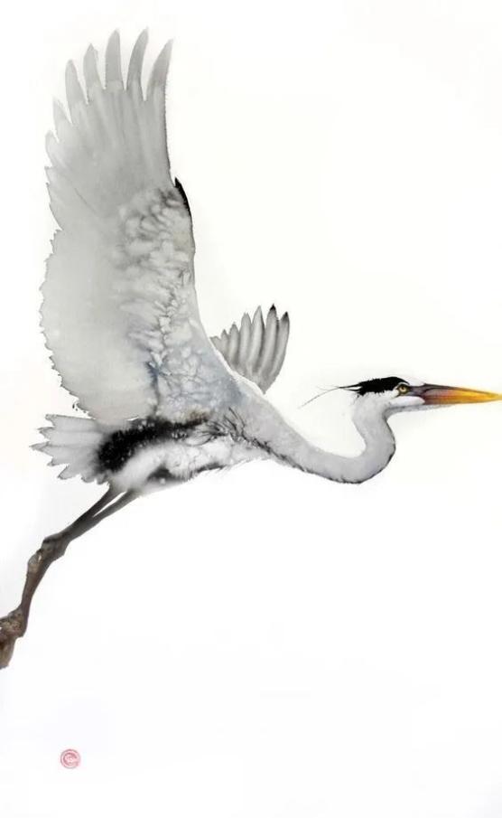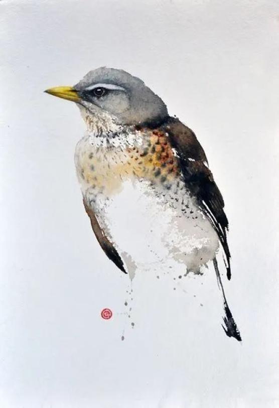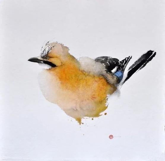 Endre Penovac的画几乎不见线条,没有如刀的笔意,更没有凛然的细节,简单两笔,山雀跃然纸上。可想而知,若没有日复一日的练习,又如何能创造出如此点墨成画的流动感?