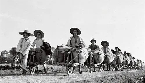 1954年11月9日,湖北省孝感县朋兴区农民的售粮队伍,全国各地的秋粮统购工作已逐步展开。对资本主义工商业利用、限制、改造政策的确定大大地促进了对资本主义工商业的改造。在1953年底以前,着重发展以加工订货为主的初级和中级国家资本主义形式。1954年1月,中央财政经济委员会提出关于有步骤地将资本主义工业基本上改造为公私合营企业的意见。此后,开始转入重点发展公私合营这种高级形式的国家资本主义。加工订货,主要是国家同资本家在企业外部的合作。公私合营,是社会主义成分同资本主义成分在企业内部的合作,公方占有相当股权,公私双方共同经营企业,公方代表居于领导地位。这两种形式的国家资本主义,利润都实行“四马分肥”,即分为国家所得税、企业公积金、工人福利费、资方红利四个部分,资方红利大体占四分之一,企业利润大部分归国家和工人,基本上是为国计民生服务的。这就使这些企业具有不同程度的社会主义性质。