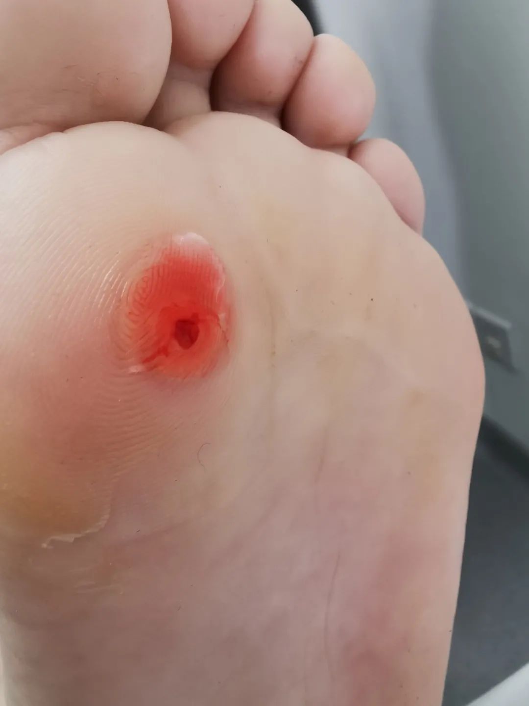 在门诊中,我们总能遇到这样的小患者,因为长在脚底,难免会忽视,当这样的小疙瘩增大影响走路或是越来越多时才会来医院就诊。仔细检查后会发现,原来不是鸡眼,而是跖(zhí)疣(见下图)。