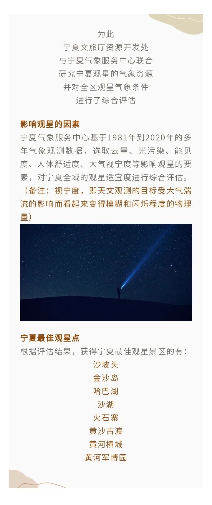 原标题:《送你万里星河!宁夏最佳观星景区出炉!》