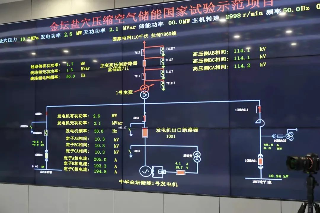 负责该项目基建和运维的华能金陵电厂专业团队介绍,本次并网试验标志着项目三方团队已将盐穴压缩空气储能这一新型储能技术,从“计算公式”落地为“设计图纸”,经建设安装成为“厂房设备”,经调试运行发出“第一度电”,是对大型非补燃压缩空气储能电站技术流程的成功验证。