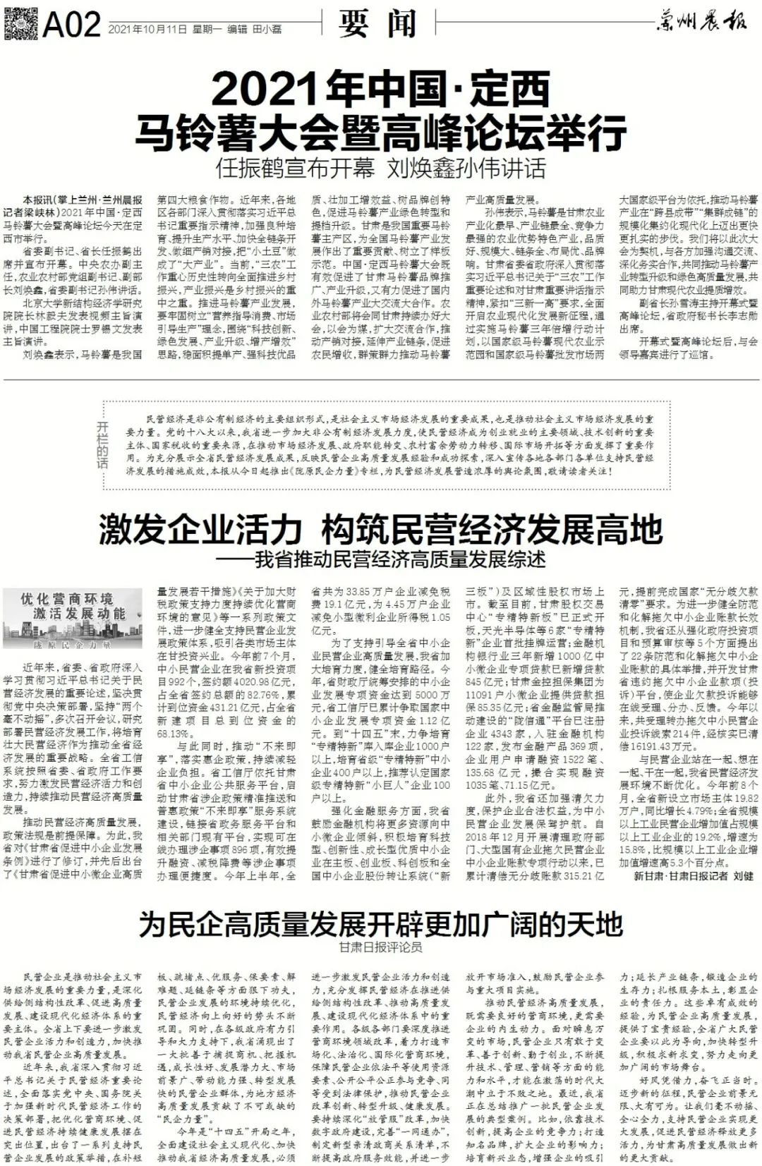 兰州晨报在线速览(2021年10月11日)