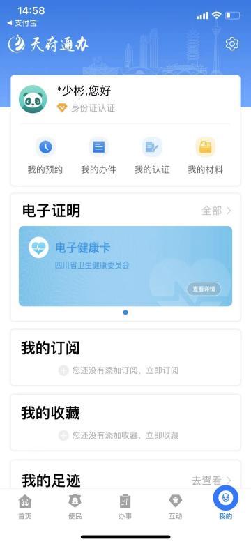 居民可使用“天府通办”移动端通过实名、实人认证后申领和“亮证”,业务人员根据业务场景对电子凭证进行扫码核验。