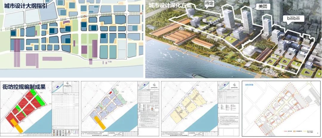 四、面向实施,分片推进控规编制。在形成稳固的空间结构与开发单元后,根据土地出让工作,在充分对接开发需求的基础上,组织街坊控规编制工作。例如,在定海社区N090603单元控规编制的过程中,充分结合B站全国总部、美团上海总部等意向单位的需求,在城市设计大纲的框架下,同步开展城市设计深化、街坊控规编制、建筑初步方案设计,实现空间规划与建设项目的紧密结合。