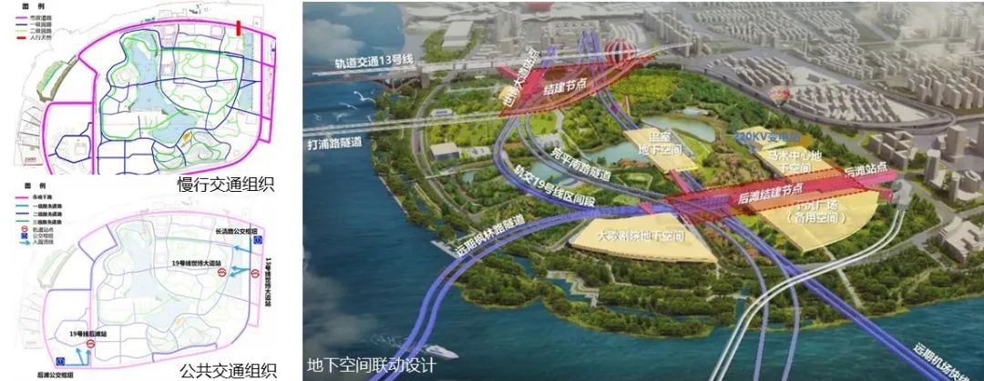 世博文化公园规划实践。世博文化公园地处黄浦江沿岸世博会地区,总占地面积187平方公里,是上海市中心最大的全开放城市公园。由于涉及地上地下基础设施较多,对方案实施、交通组织、市政规划等方面提出了较高要求。世博文化公园不仅仅是简单的景观设计,既要统筹各专项,也要兼顾建设时序和节点空间建设的时间计划。在横向上,以控规为技术统筹平台,横向协调各专项规划。通过20多个项目的实施主体和建设管理部门提前介入,公园为整体分解管控要求,整体进行指标平衡、设施统筹配置、空间互联互通等工作,从而打破以单个项目或单个地块为单位的工作模式与管理方式。在纵向上,发挥规划引领作用,分步落实,分层管控。第一步,明确功能定位和目标策略,确定空间结构,落实控规,引导概念方案设计;第二步,7大专项同步推进,节点工程研究至工程深度,以附加图则形式统筹若干专项规划,明确地面、地上、地下的空间分层管控要求和建设时序。