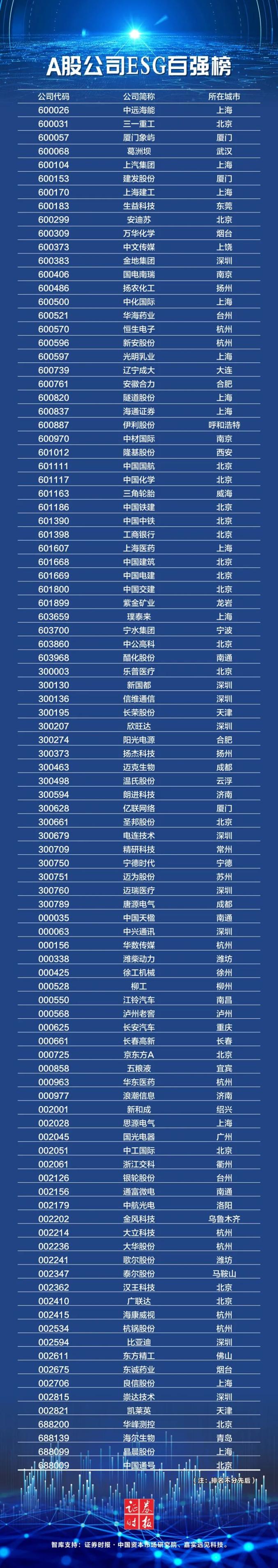 上市公司,既是国民经济的“基本盘”,也是践行ESG的重要主体。除城市维度外,证券时报同时编制发布了《A股公司ESG百强榜》,该榜单由证券时报·中国资本市场研究院和嘉实远见科技提供智库支持。