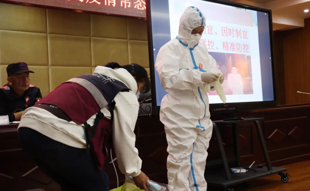 培训还从“减少人员聚集、加强环境卫生和消毒、规范空调管理和使用、提高公共健康素养、重点单位防护、重点人群防护 ”等方面着手,详细解读新冠疫情常态化防控指南,指导帮助景区因地因时制宜、联防联控、精准防控。会上,古城区疾控中心的工作人员还给大家现场示范了防护服的正确穿脱步骤和方法。