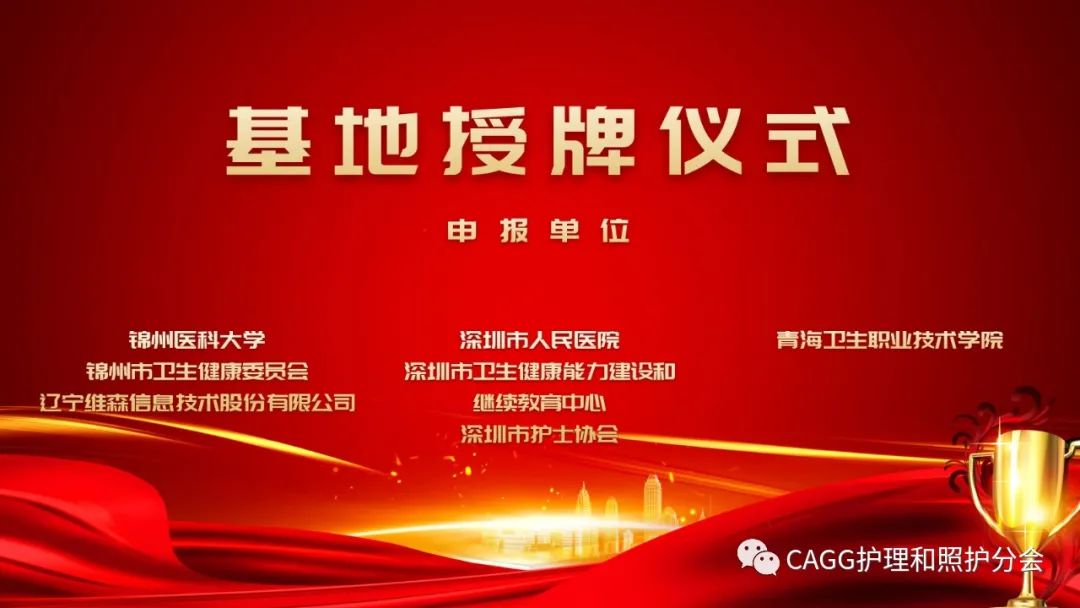 第三版块首先是基地授牌,今年护理和照护分会新设立了三家基地,分别是青海卫生职业技术学院;深圳市人民医院、深圳市能教中心、深圳市护士协会;锦州医科大学。授牌仪式上,副会长高和为三家基地的负责人颁发了聘书。
