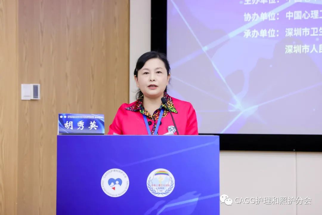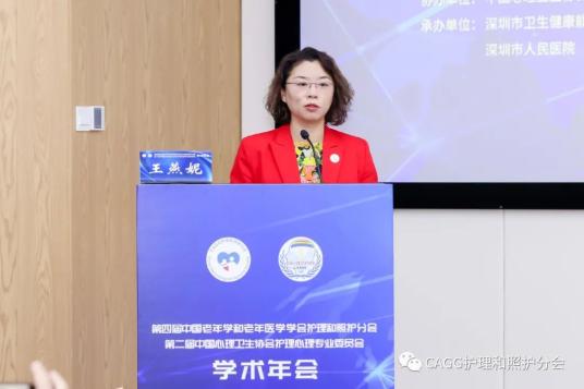王倩总干事主持开幕式。深圳市人民医院副院长张伟,深圳市卫生健康委员会二级巡视员孙美华,暨南大学护理学院院长、广东省护士协会会长陈伟菊,中国老年学和老年医学学会(CAGG)副会长高和,CAGG护理和照护分会主委郭桂芳致辞。