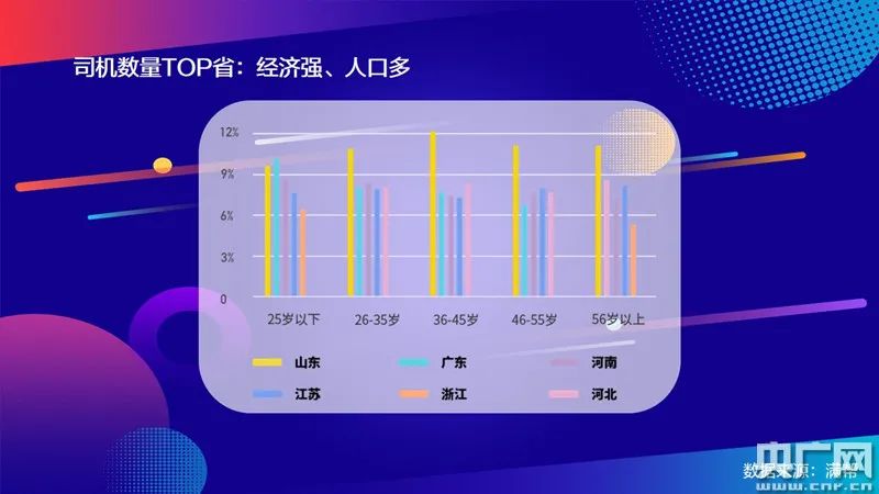 卡车司机群体离消费者很远,生活中基本没有交集;但司机离消费者又很近,他们的每一趟货物都与消费者衣食住行息息相关。不同于对卡车司机都是爷叔的想象,满帮平台大数据显示,卡车司机平均年龄仅有37岁,45岁以下占比近80%,80后、90后是中坚力量。