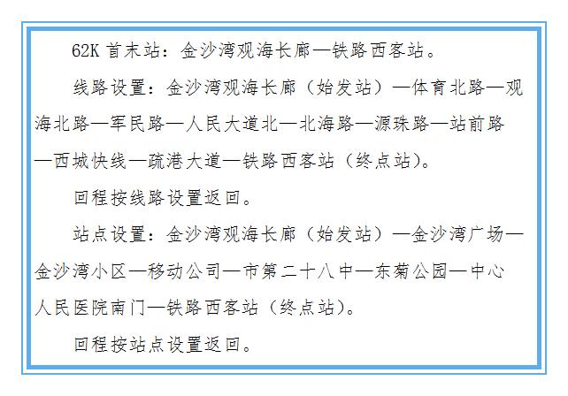 优化调整62K公交线路62K优化后的线路设置具体如下: