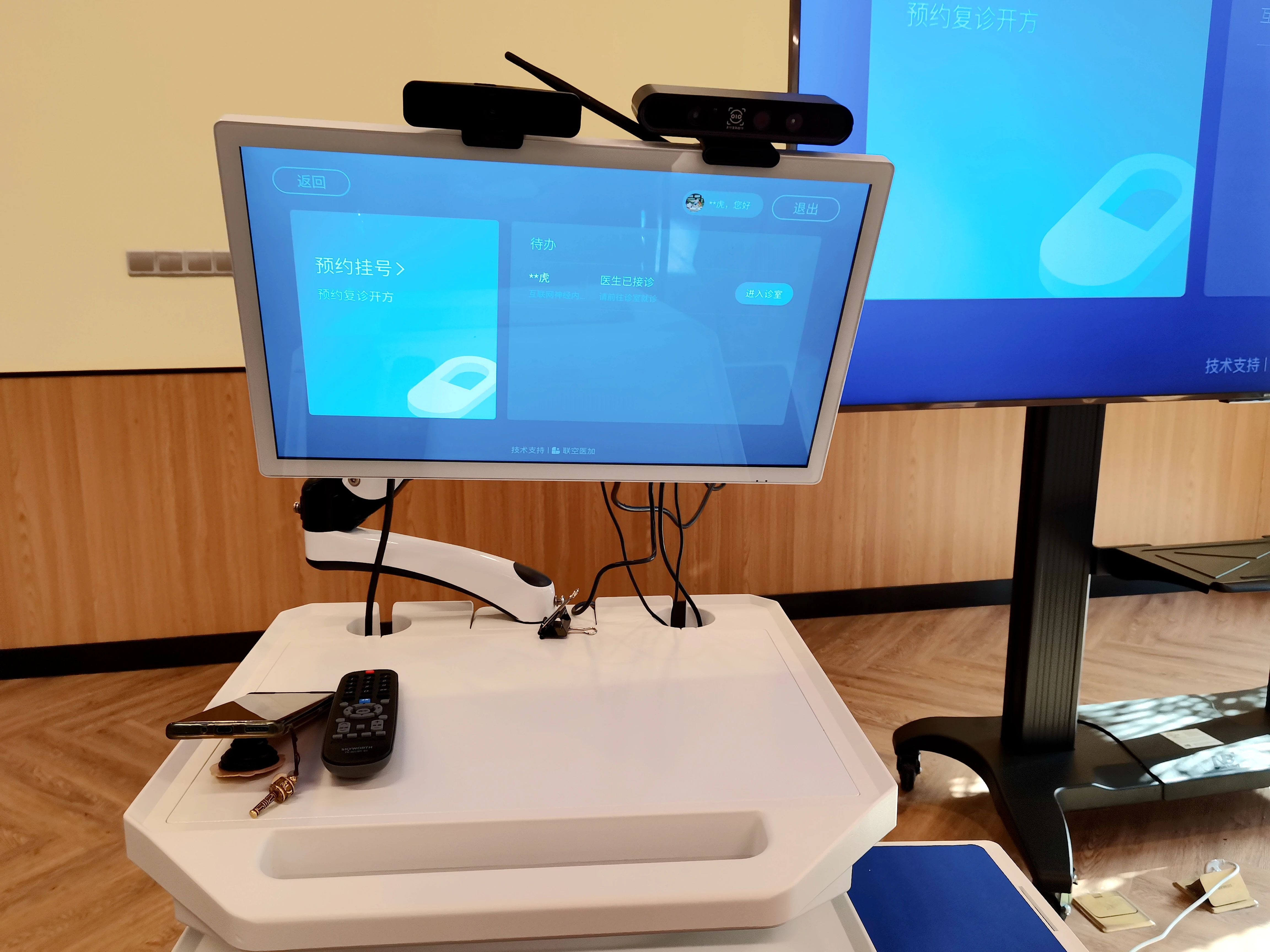 智慧诊室一体机目前,一福院开通的互联网医院,跟普通医院门诊时间和看诊科室保持一致,对入住长者医疗复诊、慢病管理等提供了极大便利。即便是院内中风、偏瘫、失智老人等重点人群,也可通过线上医院,随时进行问诊和康复指导,配合院方康复师帮助老人进行康复治疗。蒋雄说,“我们配备的智慧诊室一体机可以随时移动,只要有就诊需求就可以随时预约随时看病。”