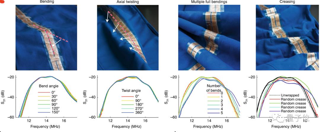 △ “磁感应贴”结构示意图其次,研究人员通过实验发现,不管是对这个元件进行弯曲、折叠还是揉搓,它的性能都不会发生变化,即能够保持频谱稳定性。
