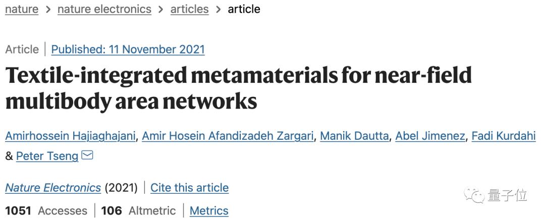 △ 相关研究已登上Nature子刊并且,相比传统的NFC功能只能在10cm之内生效,这样的衣服在1.2米之内都有信号。