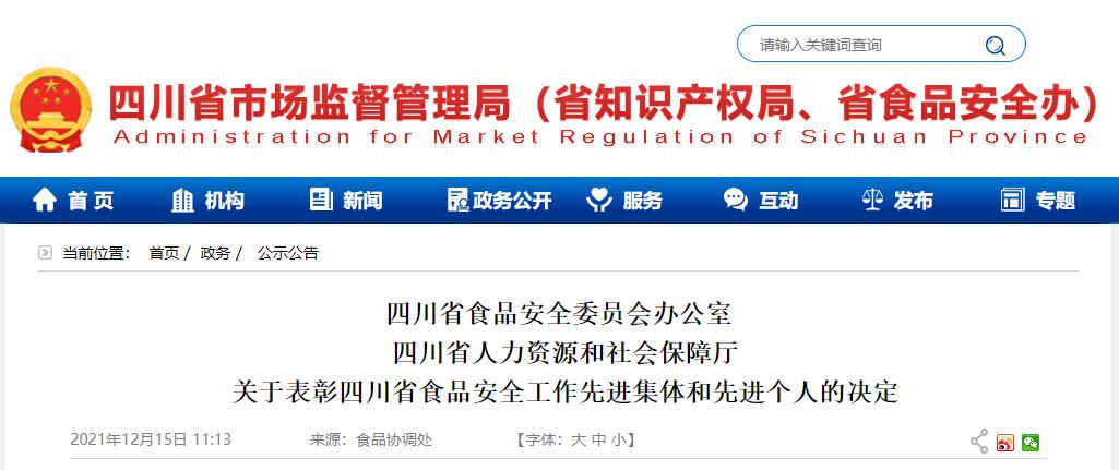 原标题:《这些集体、个人荣获四川省食品安全工作先进称号!》