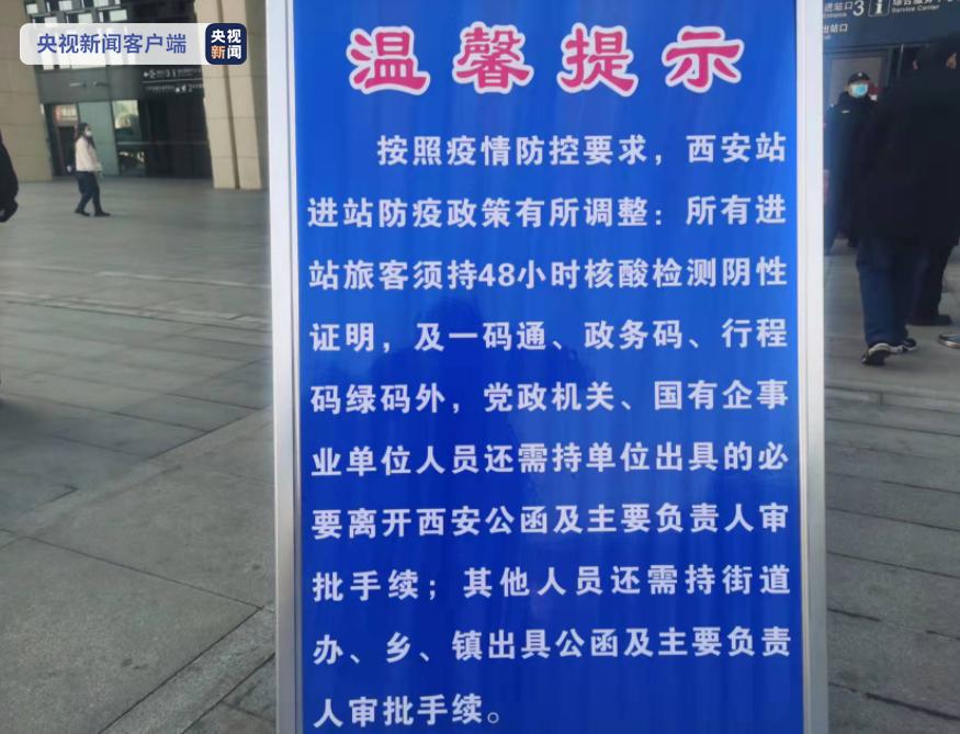 此外,从西安火车站、西安北站乘车离开西安的人员,除必须持有48小时核酸检测阴性证明及一码通、政务码、行程码绿码外,党政机关、国有企事业单位人员还需持单位出具的必要离开西安公函及主要负责人审批手续;其他人员还需持街道办、乡镇出具的公函及主要负责人审批手续。
