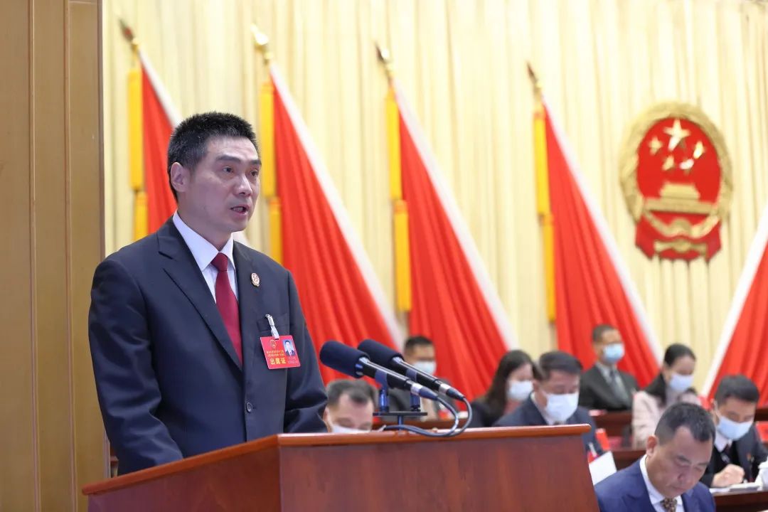 福州市晋安区人民法院代院长黄勤武向大会作法院工作报告。过去五年