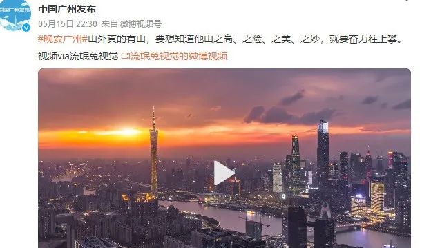 坚持航拍广州,罗宜威得到了官方的注意。他的短视频被“中国广州发布”“广州共青团”“广州天气”等官方微博转发。