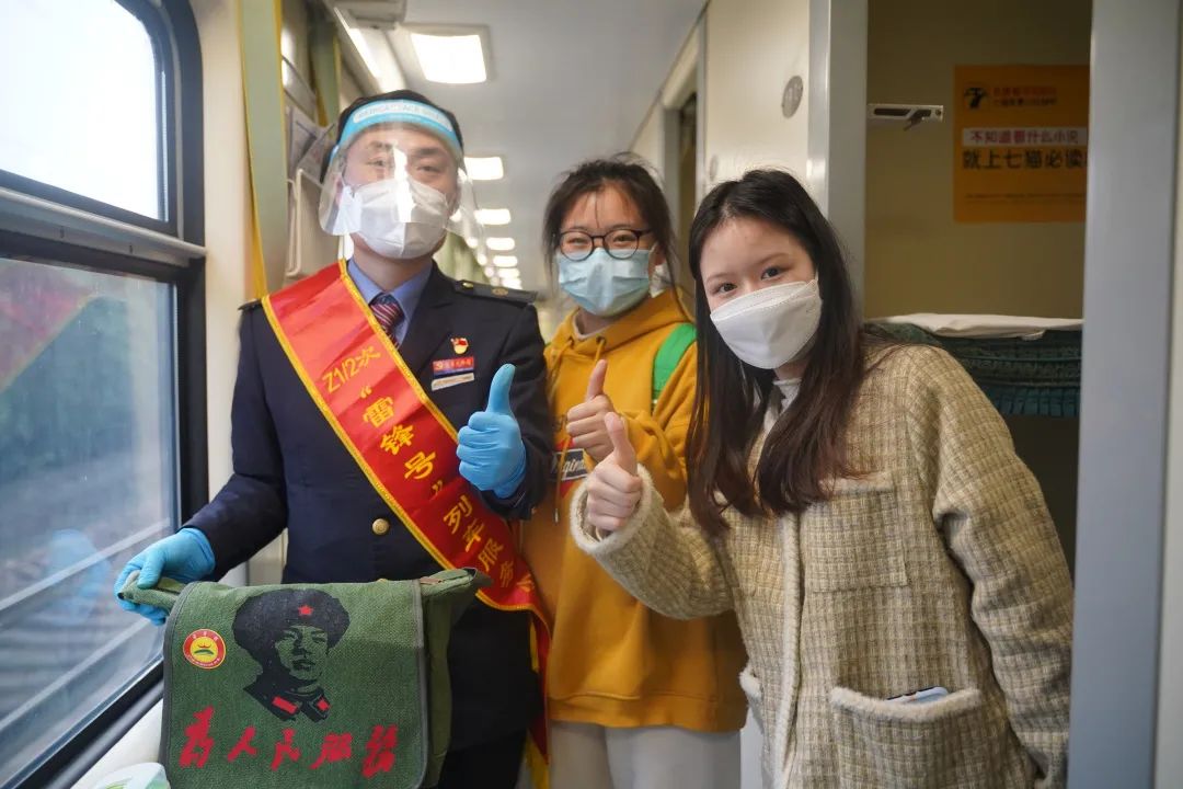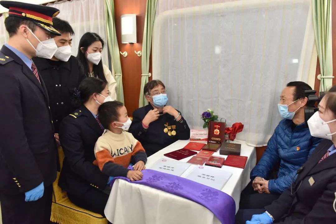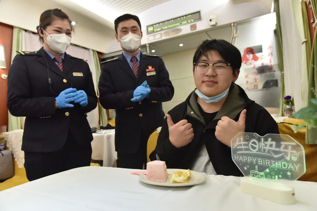 车班“学雷锋服务小分队”来到车厢,为70岁以上的重点旅客提供帮扶服务,组织3月出生的旅客一起过生日、吃蛋糕,车厢内洋溢着浓浓温情。