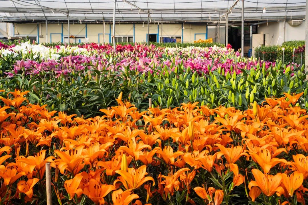万顷洋百合花农业合作社内五颜六色的百合花正娇艳盛放。