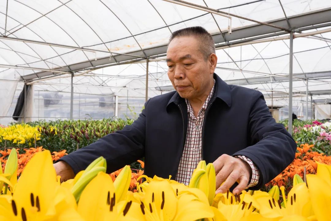 “想当初我们的种植条件非常简陋,只是简单地搭了竹子,拉网种植,缺乏大棚设施,导致有一年的百合花由于天气寒冷而失收。后来政府大力支持百合花产业发展,为建设农业大棚提供资金补助,我们才不用看天吃饭。“看着目前发展如日中天的种植基地,李炳林回忆道。