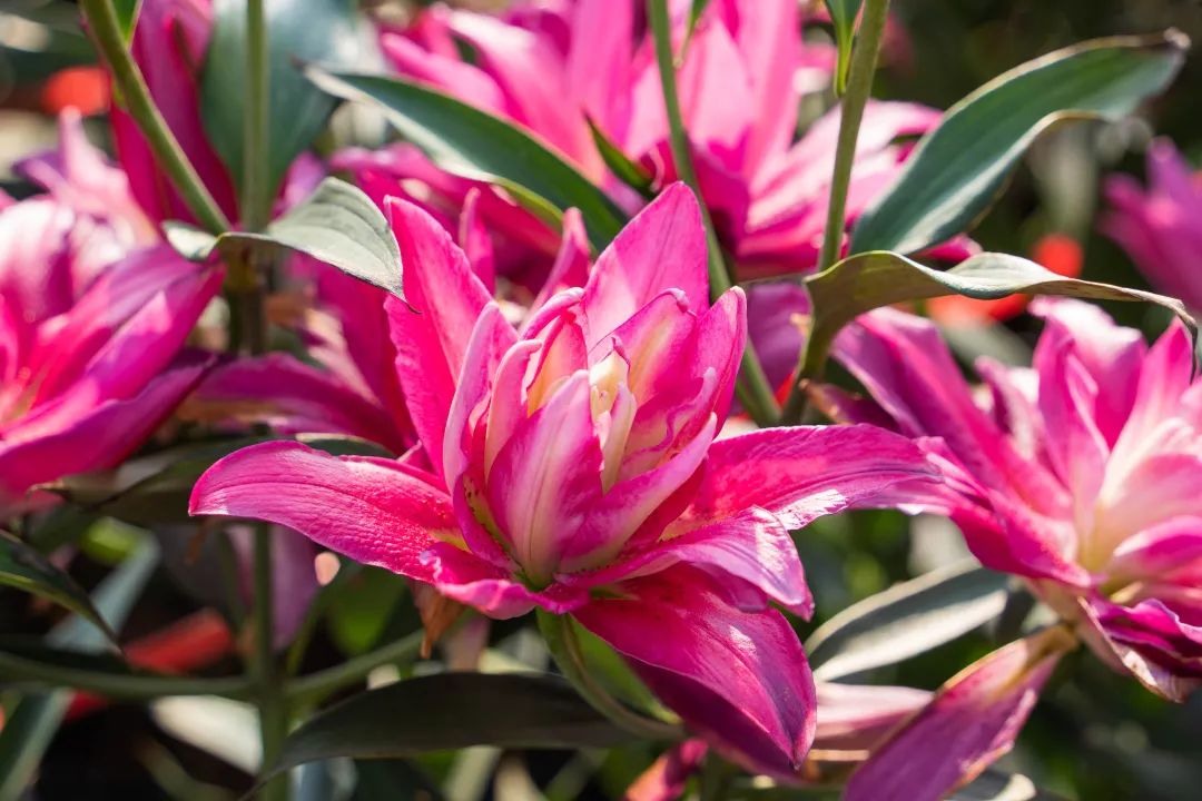 走进万顷洋百合花农业合作社,五颜六色的百合花正娇艳盛放,微风拂过,一朵朵百合花在阳光下尽显娇艳的身姿,所到之处,皆是扑鼻花香。