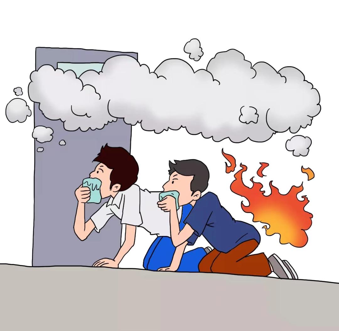 3.在火灾初始阶段逃生,湿毛巾遮挡口鼻后可有效减少烟气吸入,但是在高温和浓烟条件下,湿毛巾几乎不起作用,因此要保持冷静选择避烟逃生路线。