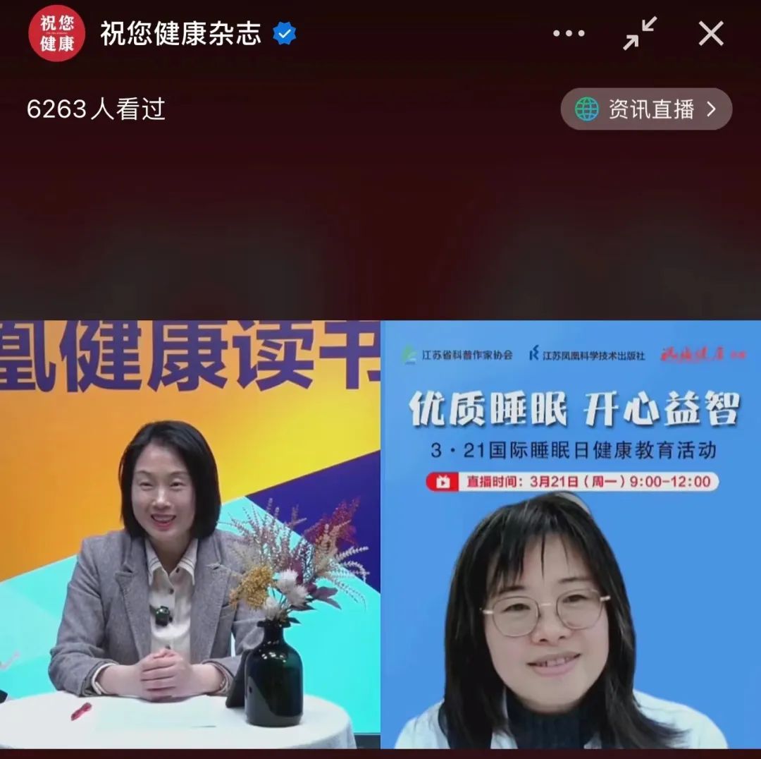 3月21日为国际睡眠日,《祝您健康》杂志邀请了江苏省研究型医院学会睡眠分会的权威专家,在“凤凰健康读书会”线上直播间,对各种睡眠问题进行了全方位的解答。