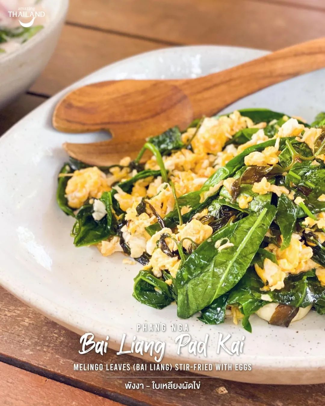 “泰”美味攀牙的买麻藤叶是泰国南部一种味道独特的绿色蔬菜,用鸡蛋炒买麻藤叶是每个人都喜欢的菜。由于买麻藤叶独特的味道,所以可以很多种烹饪方式制作,比如炒、煮和生吃,尤其是和鸡蛋一起炒,适合所有人吃。