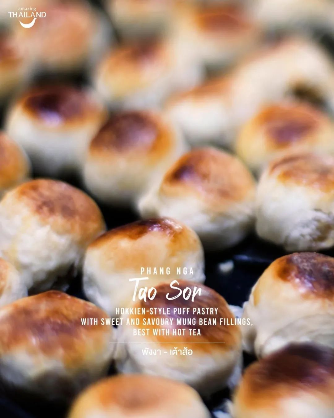 “泰”美味这款豆沙饼是攀牙府的特色美食。由于是源于闽南的糕饼点心,所以同样在众多闽南华人的新马地区也能找到。