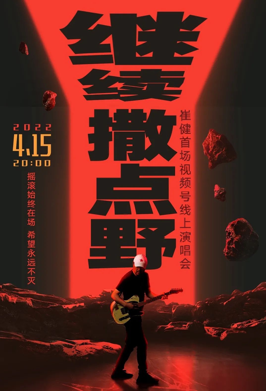 演唱会开始前,朋友圈就不断有人晒出直播链接,并分享演唱会海报,上面印有“摇滚终在场,希望永不灭”,成为了这场演唱会的第一个亮点。
