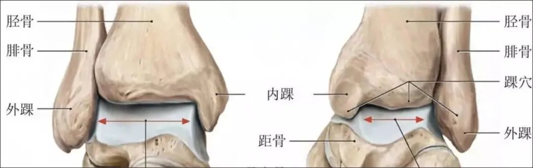 首先,从骨性结构组成来说,包括胫骨、腓骨和距骨三块骨头。像我们在木工活中看到的榫卯结构。