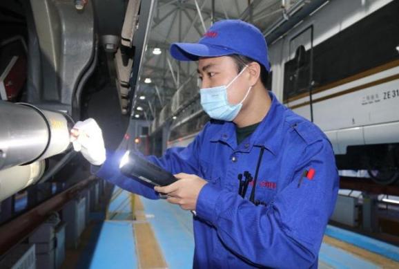 青年职工进行一级检修两侧作业这帮朝气蓬勃的年轻人有担当、有干劲,每天由他们检修的动车组都从朝阳站迎着旭日始发,开始奔驰。