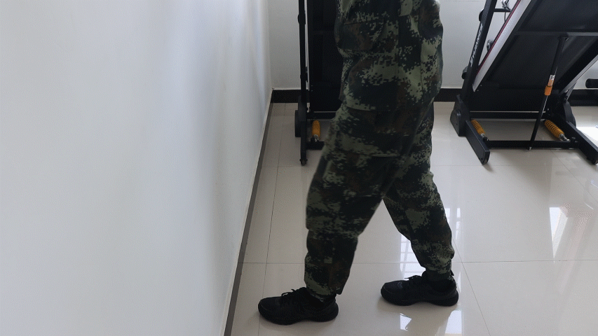 靠墙支撑,两腿一前一后打开,前腿膝盖弯曲往墙面贴,注意过程中保持前腿脚跟落地。此外,离墙越远,对脚踝拉伸幅度就越大,建议每条腿重复5次。